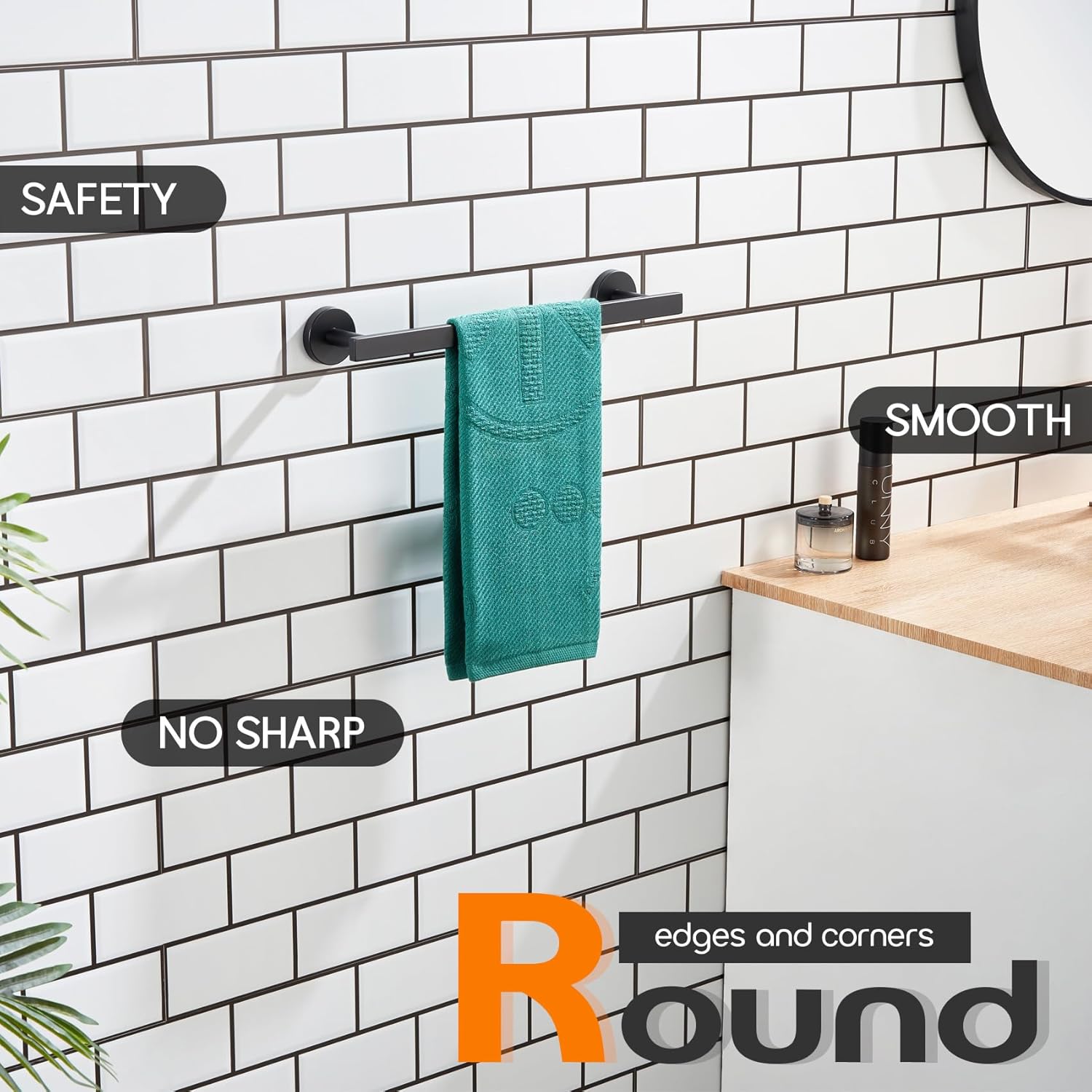16 Inch Bathroom Towel Bar Bath Towel Rack Kitchen Towel Holder Towel Hanger Wall Mounted SUS304 Stainless Steel 2 Pack Matte Black AN4001MB-L16-P2