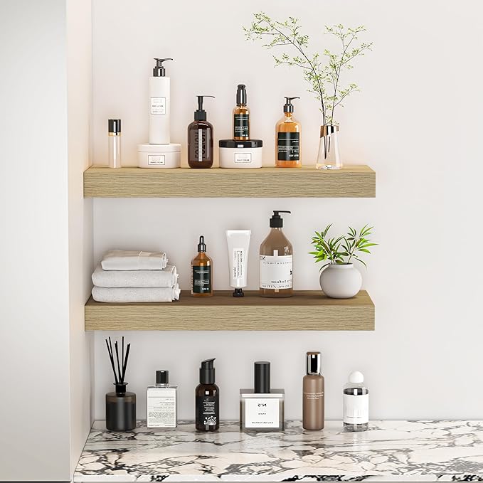 - Multi-scene & Functional - Mount in the bathroom perfect storage of beauty, hair products or aromatherapy. Mount in the bedroom to hold your books, cosmetics and personal privacy things. Mount in the kitchen to hold spices and jars. Or as a display shelf mount in the living room to show your picture frames, trophies or favorite collection. The rustic shelves can help make full use of the empty wall, which is much more space-saving and makes your room look larger and tidier.