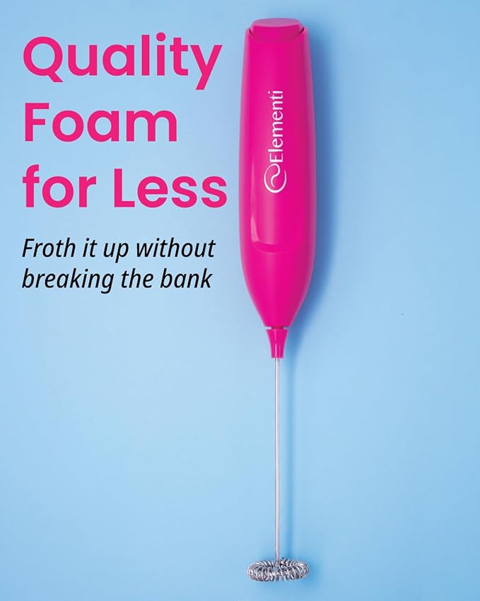 Elementi Pink Milk Frother Wand & Matcha Mixer, Mini Electric Whisk - Coffee Mixer Wand - Coffee Stirrers Electric Matcha Whisk (Hot Pink)