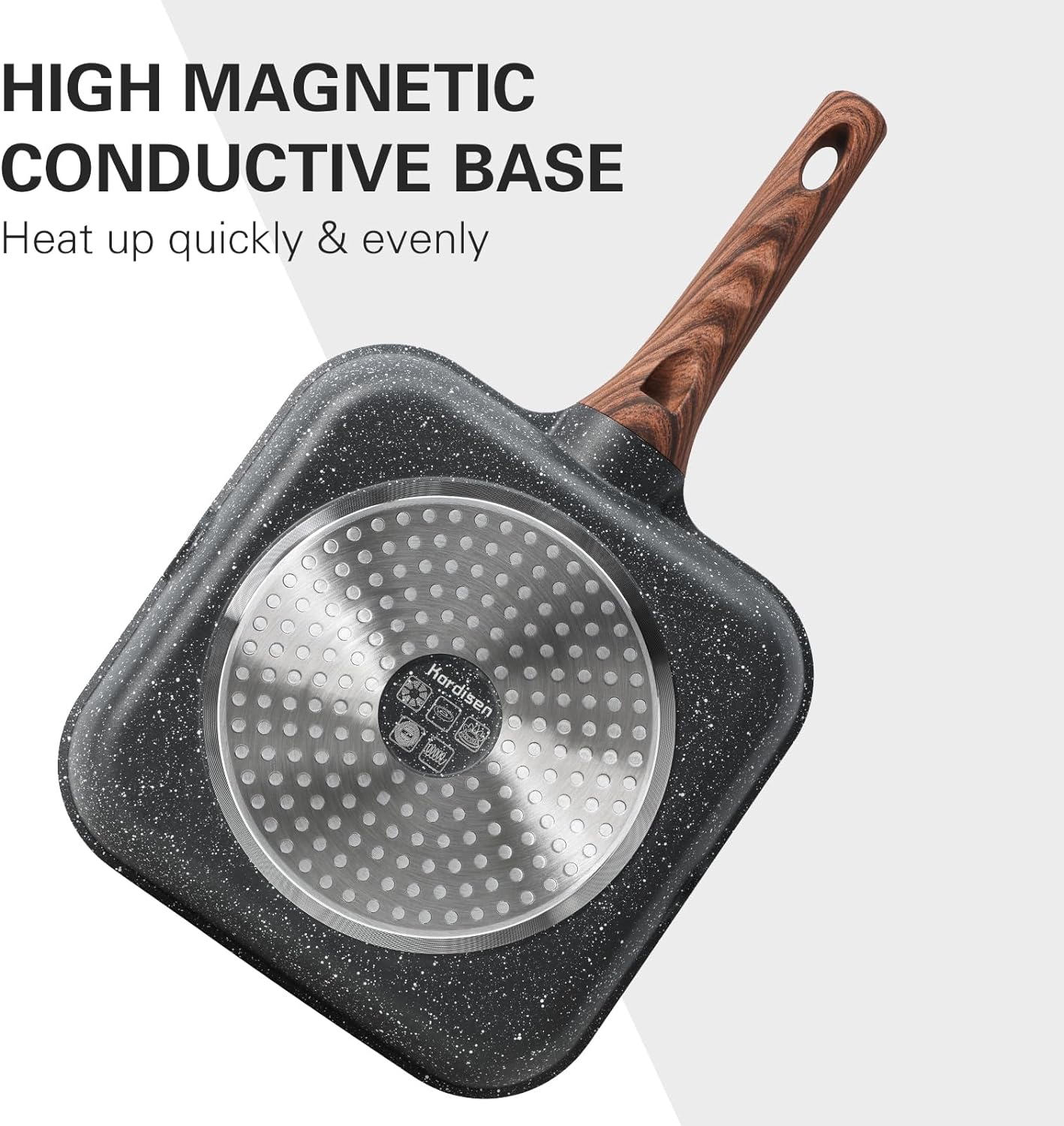 - 【Even Heating】: High magnetic conductive stainless steel base ensures even and rapid heat distribution; helps achieve consistent cooking results across the pan
