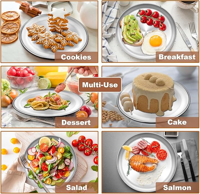 - Versatile: Sized 9’’ Dia x 0.7’’ H, Pack of 4 are suitable to make different flavors of pizza at once, Compact size for baking small pizza cookies and pies, As serving pan for fruits, snacks, dessert, Also great as metal dinner plates for kitchens, restaurants, picnics, outdoor activities, Meeting your needs for various occasions