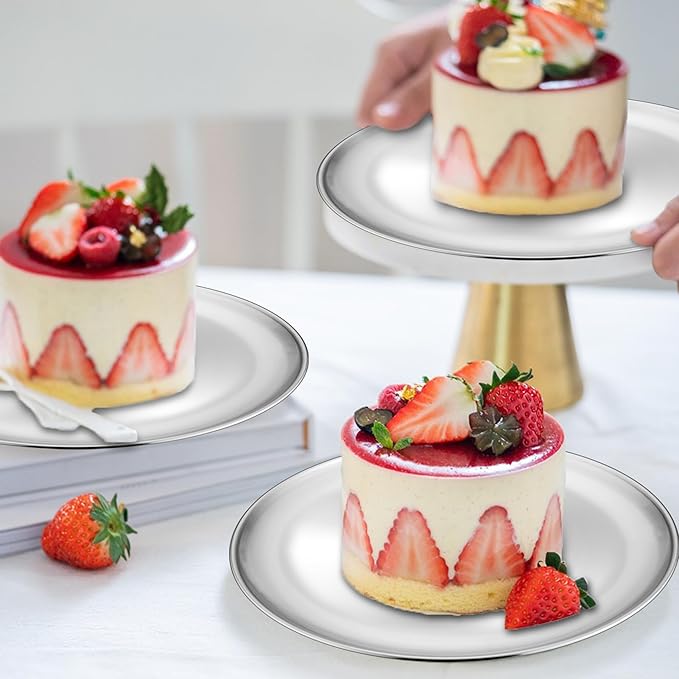 - 6 Pcs & Versatile: Sized 9ββ Dia x 0.7ββ H, Set of 6 are suitable to make different flavors of pizza at once, Compact size for baking small pizza cookies and pies, As serving pan for fruits, snacks, dessert, Also great as metal dinner plates for kitchens, restaurants, picnics, outdoor activities, Meeting your needs for various occasions