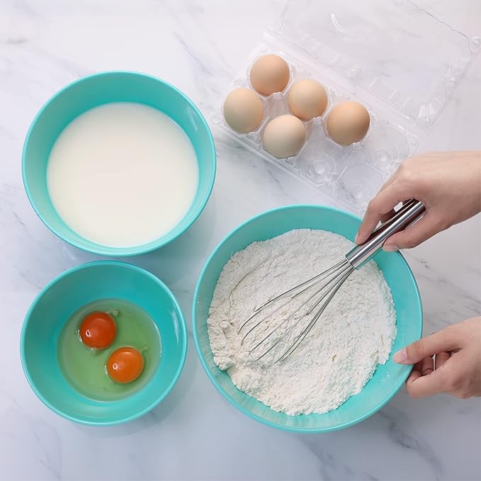 - Complete Nesting Bowl Set: Includes 3 versatile mixing bowls (0.9QT, 1.5QT, 2.4QT) with matching tight-fitting lids—ideal for mixing, prepping, serving, and storing everything from snacks and salads to batters.