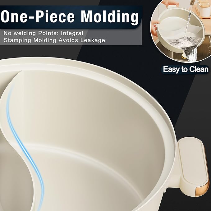 - Enjoy Two Flavors at Once - This electric hot pot is PFOA-free and features an integrated divider, allowing you to cook both spicy and mild broth at the same time. Its seamless compartments are designed in an S-shape to prevent overflow and leakage, providing a hassle-free cooking experience and satisfying different flavor preferences in a single pot.
