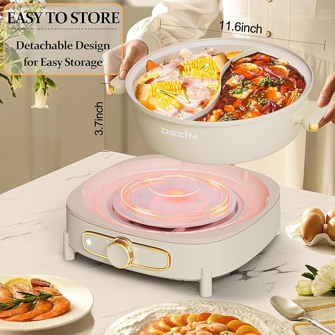 - Separated Design - This 3.2" depth electric shabu shabu hot pot is a popular choice for home cooks. It features a removable 6L capacity pot, making it easy to clean and move around. The detachable design also allows for convenient storage, maximizing space efficiency in your kitchen.