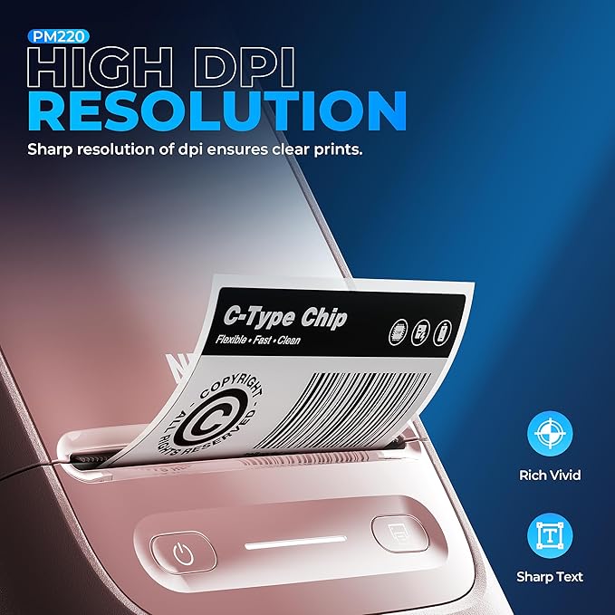 - Portable- 2 Inch PM220 label maker machine with tape compatible with smartphone & PC. Easily connect label printer to your smartphone in just 5 seconds for fast and convenient printing, label printer achieves convenient, smooth & fasts printing. Mini compact design, you can bring this portable label maker machine with tape to anywhere.(Note: charging adapter not included, not suitable for fast charging adapter.)