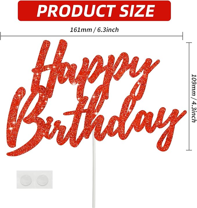 - 【High quality】Our Happy Birthday Cake Topper is made of high quality glitter cardboard, which is very safe to put them on cakes, cupcakes, ice cream, fruits, pie, dessert, cheese or any dish and food appetizer you want to decorate.