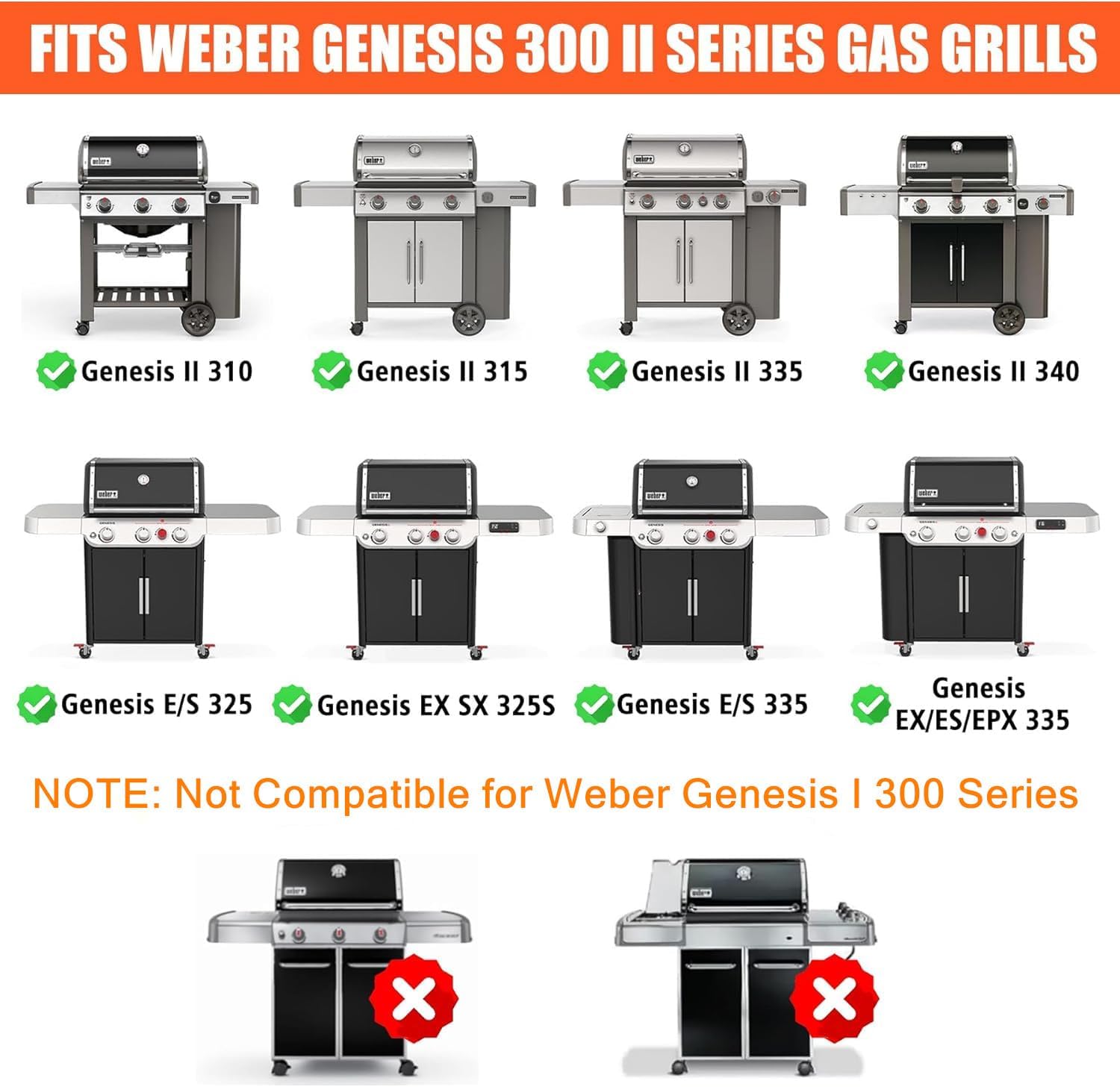 - PURCHASE NOTES: The griddle for Weber Genesis II E-310, E-315, E-325, E-330, E-335, S-310, S-330, S-335, S-345, SE-310, SE-330, SE-335, CE-330, CSS-315, CSS-335, CSE-315, CSE-335 grills and LX S-340, E-340, CSS-340 and more. Not Fit Weber Genesis I 300 Series Grill, only fits Weber Genesis II 300 Series Grill. Please kindly check the size and shape of your weber grill before purchasing