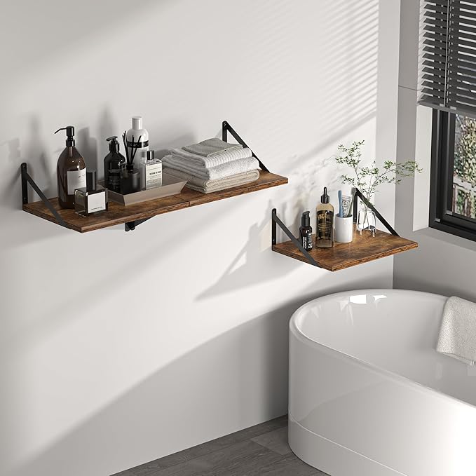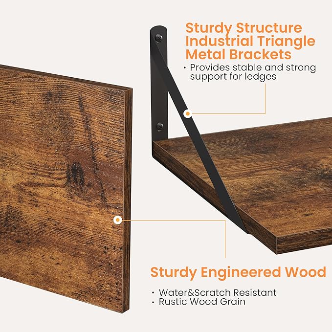 - [Discover More Organization Space] - Don't worry about cluttered desktops and floors! Why not try using the walls? The wonderful combination of smooth-surfaced metal brackets and engineered wood board texture decorates your home with a natural and rustic beauty! Great for organizing books, collectibles, plants, and trophies on the wall without occupying floor space.