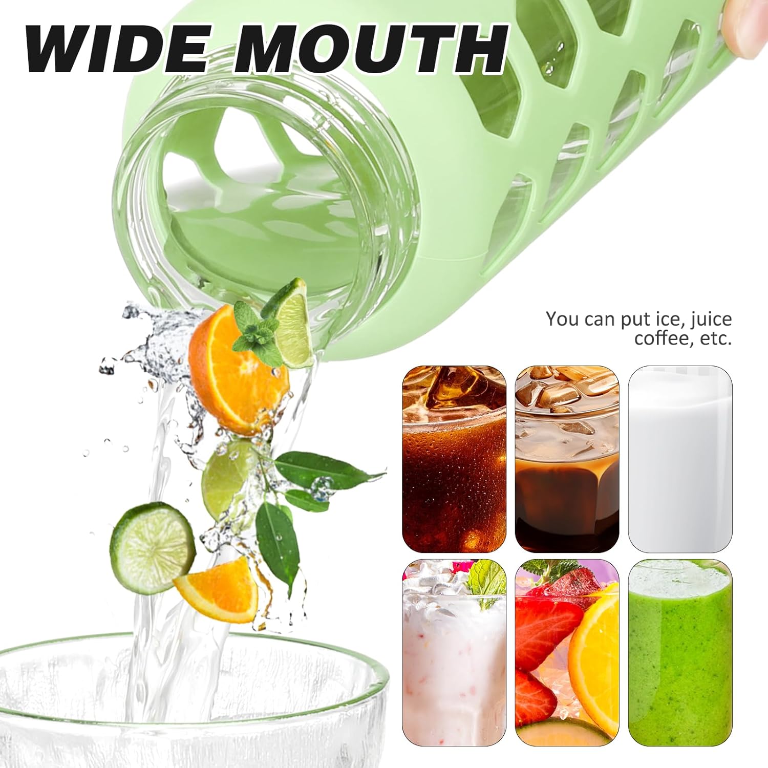 - COLD DRINK:Waterbottle made of premuim borosilicate glass which is sturdy and thermal resistance. It can withstand high and low temperatures without shattering or cracking, which makes the glass waterbottle suitable for both hot and cold drinks.