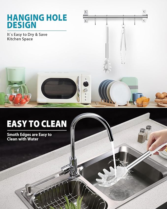 - Special Design: The high-quality stainless steel is more sturdy and keeps you away from the trouble of kitchen utensils rusting or breaking. The anti-scald silicone handle is not easy to conduct heat and is more comfortable to hold than traditional utensils. While you enjoy a happy cooking time, you can better protect your hands from being scalded