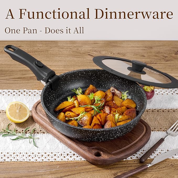 - Multi-Functional Cookware Set: Removable handle for the ultimate versatility– go from ALL kinds of stoves to the oven, to the fridge, and onto the table in one click, save money on baking pan/dinnerware set. The Fridge Storage Lid in the kitchen cookware sets can better preserve food in the refrigerator.