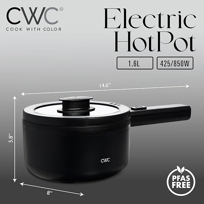 - Versatile Cooking Options: The COOK WITH COLOR 1.6L Electric Hot Pot is perfect for preparing noodles, rice, soups, stews, and more. Its compact size and non-stick surface make it ideal for dorms, apartments, and small kitchens.