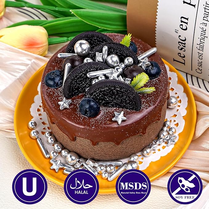- Edible Gold Sprinkles with food-grade raw materials. Preservative Free, Nut Free, Dairy Free, Chemical Free, Soy Free, Non-GMO. Produced using food-safe standards, the process does not come into contact with allergenic substances and uses Tamper-proof food label. Have Kosher and Halal Certification.