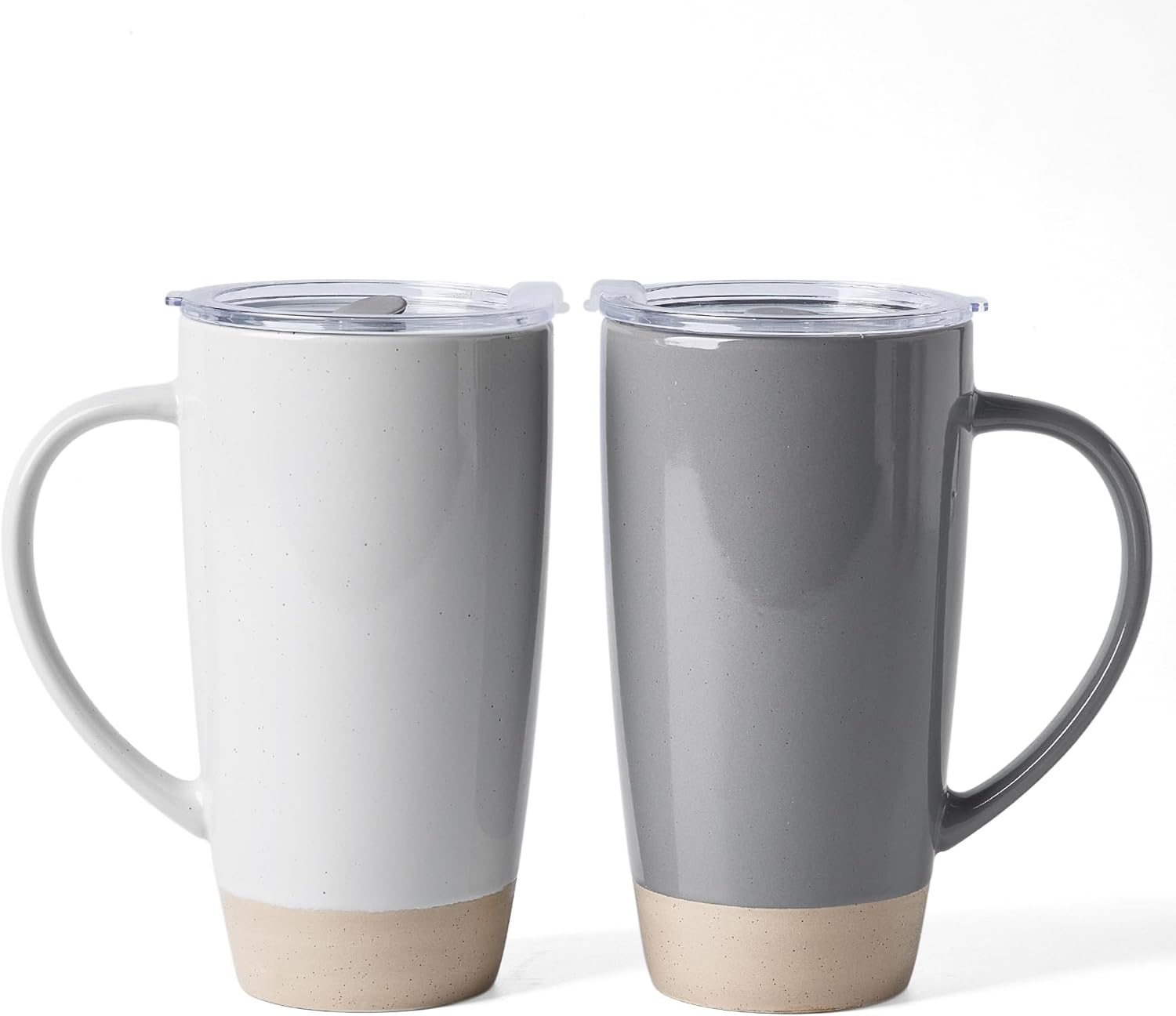 famiware Milkyway Coffee Mugs, 20oz Large Coffee Mug, Ceramic Mug Set of 2 with Lid, Cup Set with Handle for Latte, Tea, Cocoa, Milk, Home & Office, Light Gray and Dark Gray