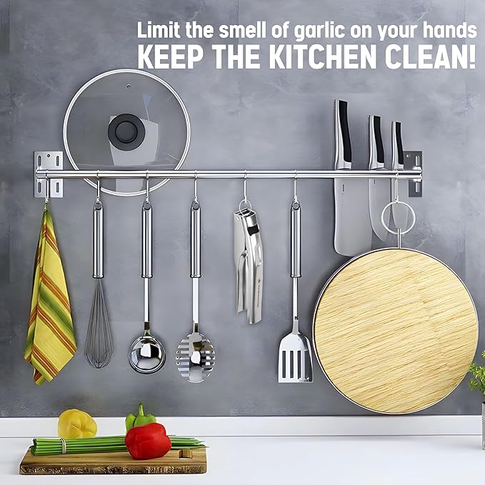 - ⚡ MULTI-PURPOSE TOOL: More than just a garlic peeler and press, this tool can be used as a ginger mincer and herb crusher too. It ensures finely minced ingredients with minimal effort and perfect consistency, making it the best garlic and ginger press for your kitchen. Say goodbye to unevenly chopped ingredients! 👉 A perfect kitchen gadget for mom this Mother’s Day.