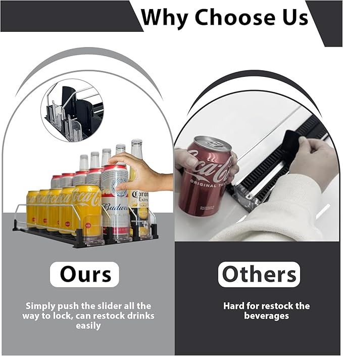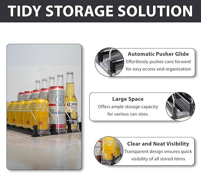 - Effortless Organization: Keep your space neat and tidy with the ACRILYX automatic can dispenser for fridge. The smart spring-loaded design gently moves drinks forward, making it easy to grab what you need while saving space and staying organized.