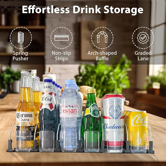 - Effortless Organization: Keep your space neat and tidy with the ACRILYX automatic can dispenser for fridge. The smart spring-loaded design gently moves drinks forward, making it easy to grab what you need while saving space and staying organized.