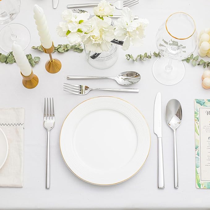 - DESIGN AND APPEARANCE: Mirror finish, natural and elegant design.Smooth and silk surface without grain, easy to clean and care in daily use. Crafted forged process,strong and durable,so that the flatware set has a thicker texture