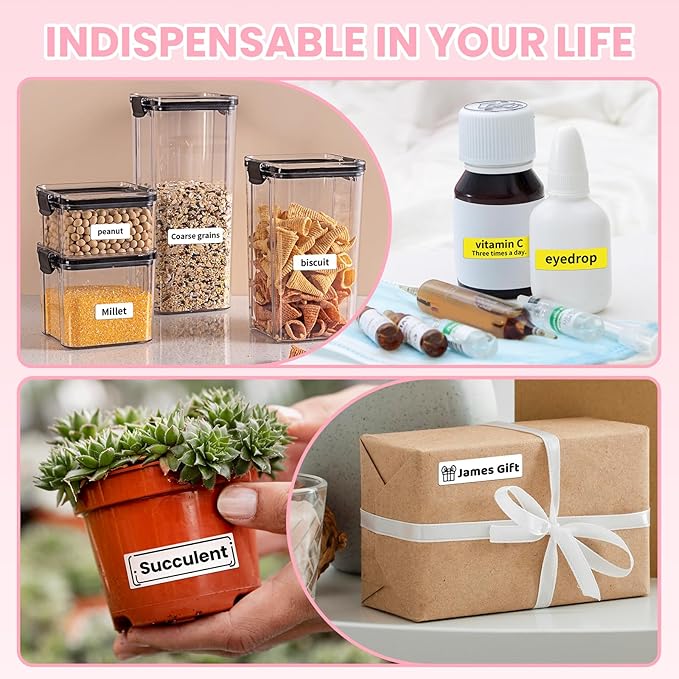 - Package Includes : The package included one Pink home label maker machine and one 1/2 inch (12mm) x 13ft (4m) 3D21 label cassettes featuring black on whit tape. This bundle ensures you have enough supplies to start labeling right away