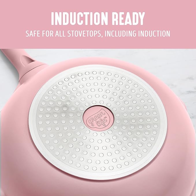 GreenLife Nonstick 12” (5QT) All in One Deep Skillet Wok with Lid, PFAS-Free Non-Toxic Ceramic Multi-Purpose Pan, Induction, All Stovetop, Egg, Stir Fry, Saute, Stay Cool Handle, Pink