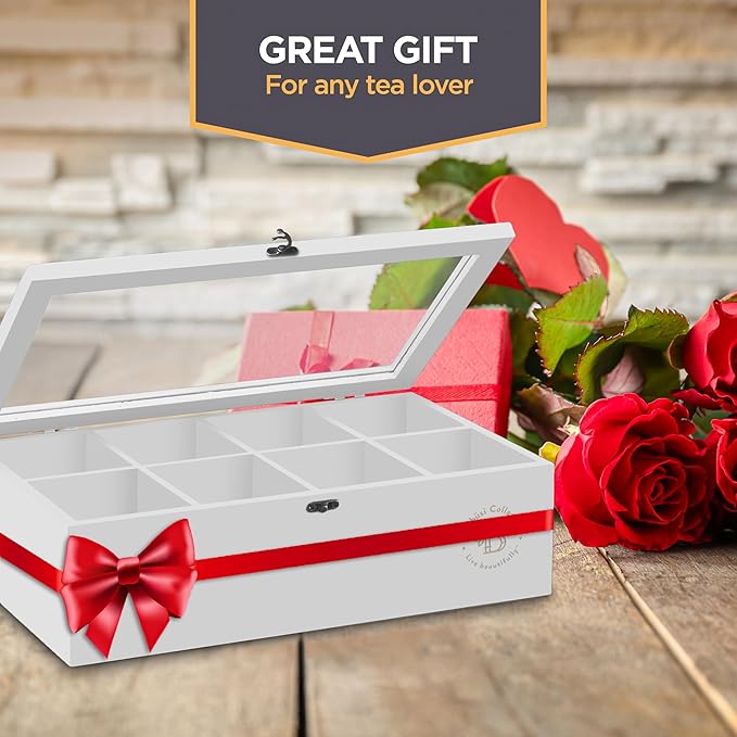 - Organize Your Tea Bags: Clean up your kitchen with this tea storage box. With its 8 compartments, it's perfect for organizing all your tea bags.