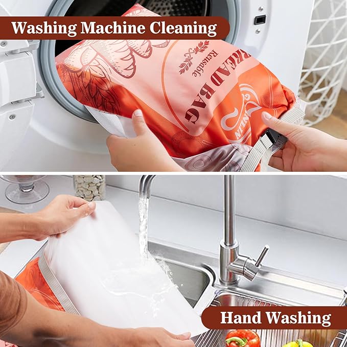 - EASY TO CLEAN AND MULTIFUNCTIONAL STORAGE BAGS: 2 packs of stylish and elegant bread bags can either be displayed on the counter, hung on the wall or stored in the refrigerator, keeping your baked goods fresh while saving space. They are also a great value for storing veggies, fruits, and a variety of food items, and are easy to clean, just rinse with water or put in the washing machine