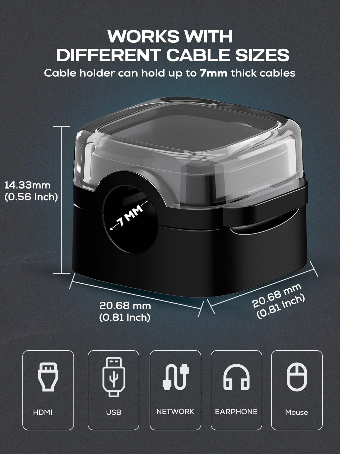 - 【Rock-Solid Magnetic Lock】: The strong magnet of the cord clips for charging cords prevents cables from popping out. Cable holder have a powerful magnetic lock that keeps your cables secured & perfectly in place. Cable Keeper has a 7mm diameter which allows smooth cable movement and desk cable management.