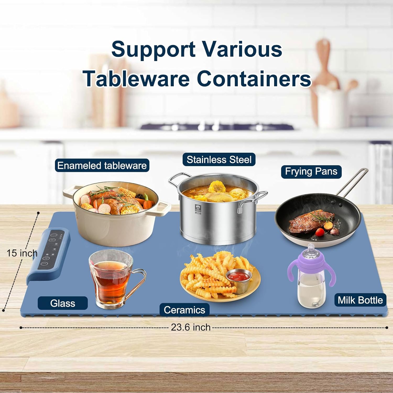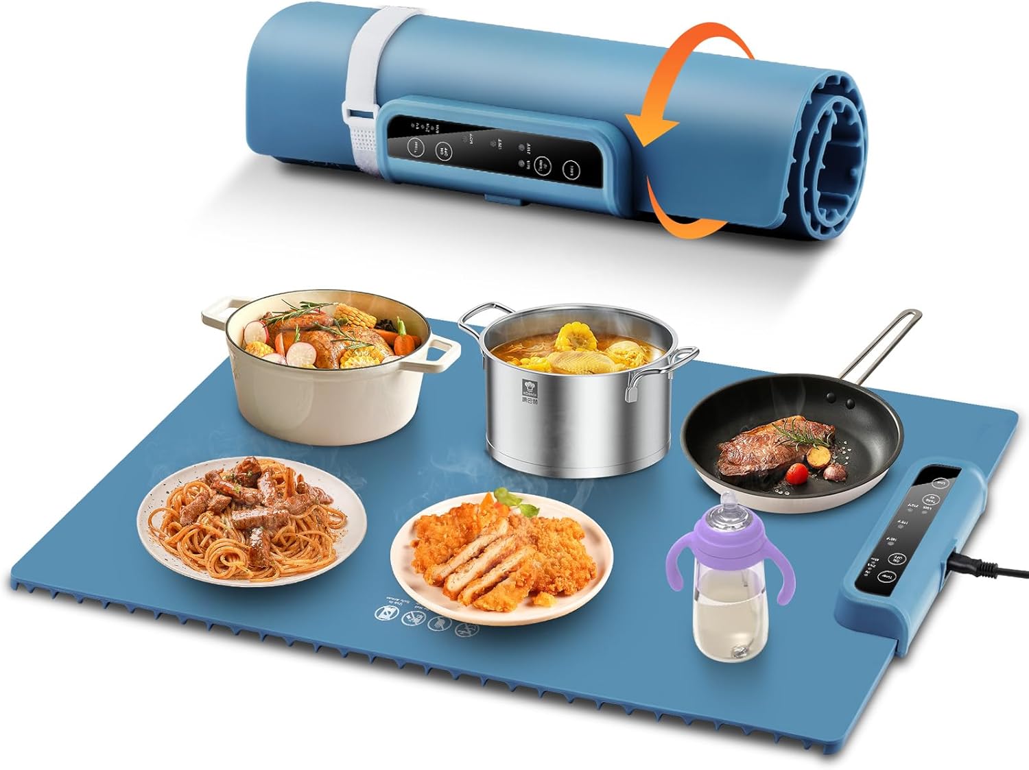 - [Multi-use Mat]: The warming mat for food works with metal, ceramic, stainless steel, glass, and enamel tableware. It keeps meals warm, ferments dough, defrosts food, heats masks, and maintains ideal temps for outdoor dinners, parties, and buffets