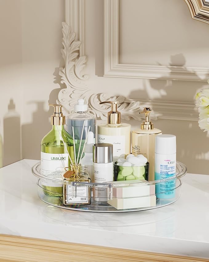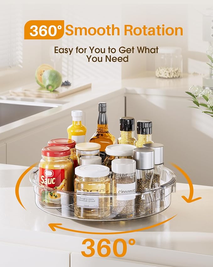 - Clear Visible Design: The LAMU Lazy Susan organizer features a clear design that allows quick visibility, making it easy to find what you need without removing items from the turntable. It also seamlessly blends with any decor, keeping it tidy and enhancing the aesthetic appeal