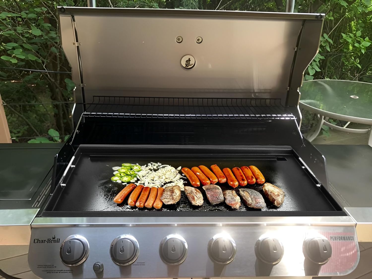- 【Transform your grill into griddle】Enjoy the best of both worlds by transforming your Grill into a griddle in a matter of seconds. Simply remove your cooking grates and replace them with griddle insert to create food never thought possible in a grill, such as pancakes, eggs, fajitas and more. Heats your food evenly for great taste. Let you and your family enjoy BBQ more!