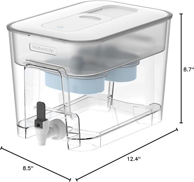 - [Fashionable And Large Capacity]: Redefine your hydration routine with Waterdrop's 40-cup water filter dispenser, marrying style and substance.(โก19 cups in the body) Enjoy a double dose of freshness with our innovative dual-filter system โ introducing a quicker flow rate and prolonged filter life.