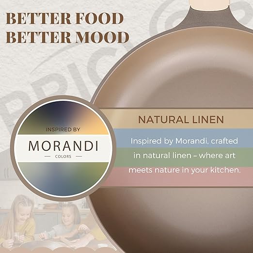 Nonstick Frying Pan, 8/10/12 Inch Stain/Scratch/Crack Proof Chef Pan, Healthy Skillet, PFOA Free Omelet Pan, Dishwasher & Oven Safe, Induction Compatible (10-Inch, Natural Linen)