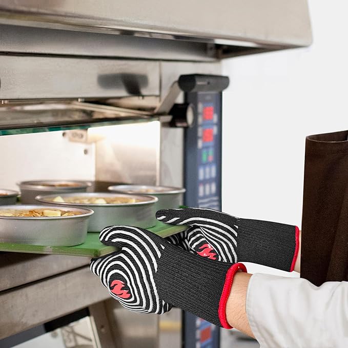 - Notice: These heat resistant gloves are flame-retardant but not permanently fireproof or heat-insulating. Avoid using them directly on open flames and avoid prolonged exposure to high temperatures to prevent burns