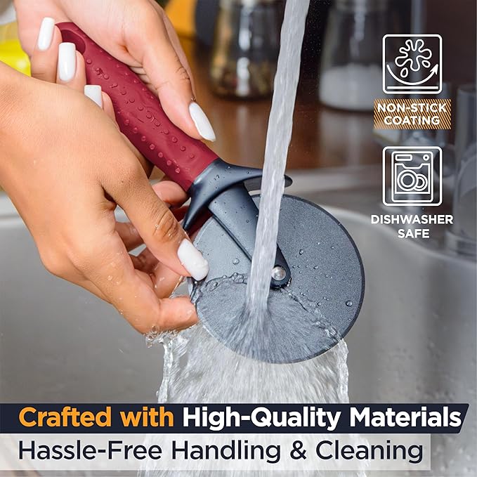Deiss Lux Heavy Duty Pizza Cutter With Wheel Slicer- Stainless Steel Sharp Smooth Pizza Cutter Wheel With Easy Grip Non-Slip Handle, Dishwasher Safe (RED)