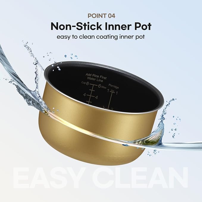- NON-STICK INNER POT: The Non-Stick Coated Inner Pot Prevents Food from Sticking, Making Cleaning Incredibly Simple and Allowing You to Easily Remove Food Residues