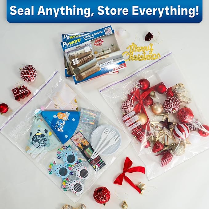 - EXTRA LARGE 16X20 INCHES SIZE: Perfect for storing bulky items like blankets, pillows, or large batches of food. With a 3-gallon capacity, these bags are the ultimate solution for heavy-duty storage needs.