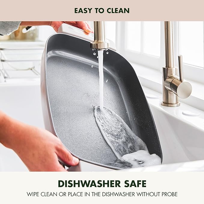 - EFFORTLESS CLEANING: Wipe clean or place the skillet in the dishwasher without the probe