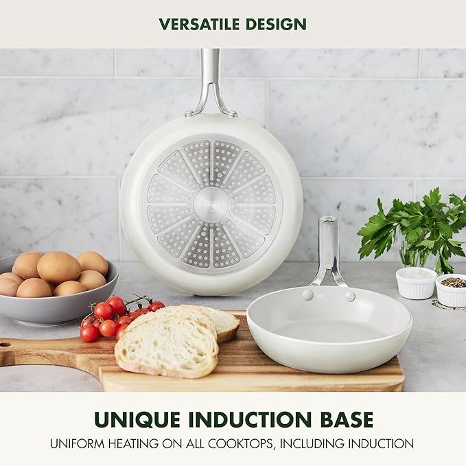 - REINFORCED WITH DIAMONDS: GreenPan's original diamond-infused nonstick coating offers remarkable durability, balanced heating, and effortless cleanup.