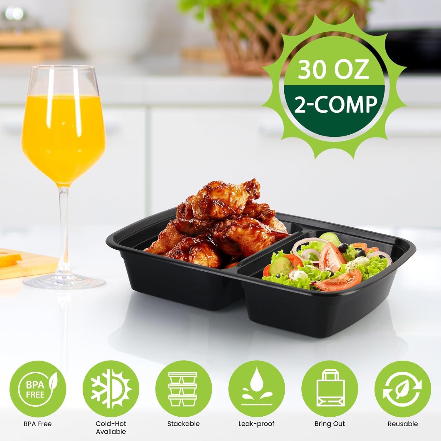 - PERFECT MEAL PREP CONTAINERS - Our meal prep containers are high quality and reusable, 30 oz 2-compartment food storage containers with lids use each compartment to separate your main course from entrees in reasonable portions.