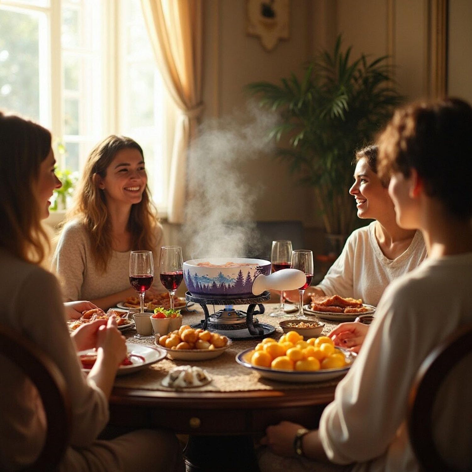 - IDEAL FONDUE with FAMILY - Perfect for gatherings, date nights, or family celebrations, this fondue pot combines style and functionality to create a delightful culinary adventure. Enjoy perfectly melted cheese, chocolate, broth, or oil fondue with your favorite fixings. Perfect for sharing, this set comes with six color-coded fondue forks so you know which is yours.