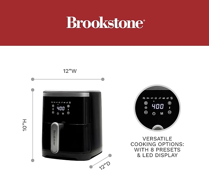 Brookstone Air Fryer – 4.5 Qt, 1300W Large Capacity Fryer with LED Display, 8 Presets, Adjustable Temp, Oil-Free Kitchen Appliance for Baking, Roasting, Frying, Healthy Crispy Meals, Black