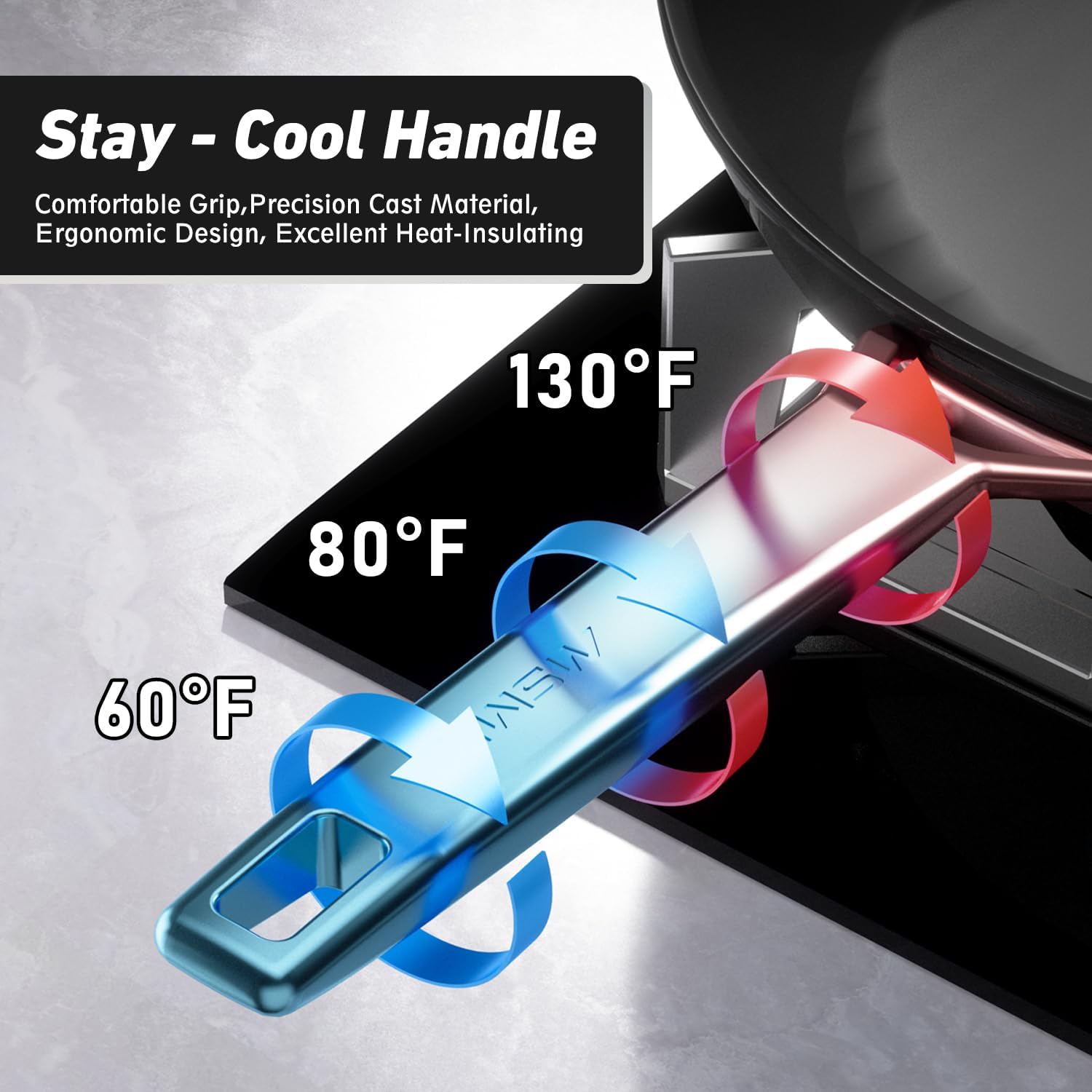 - PROFESSIONAL HEAT DISTRIBUTION: Precision-engineered with bottom, 4mm-thick smooth stainless-steel bottom & skillet design with thick mouth and thin body allow for more even heat distribution, professional-grade design disperses metal thickness consistently across the entire nonstick cooking skillet,facilitating swift and even cooking of your dishes