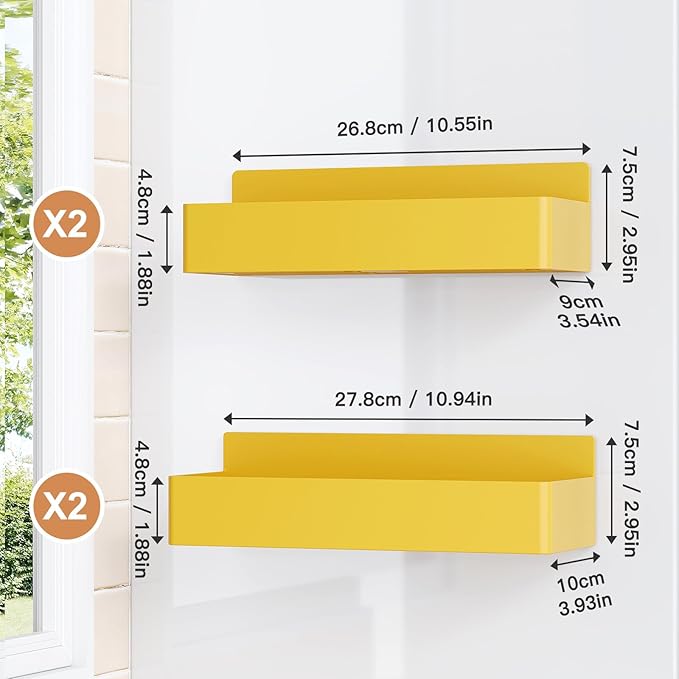 Magnetic Spice Rack for Refrigerator, Kitchen Organizer and Storage Shelf, Yellow(4 Pack)…