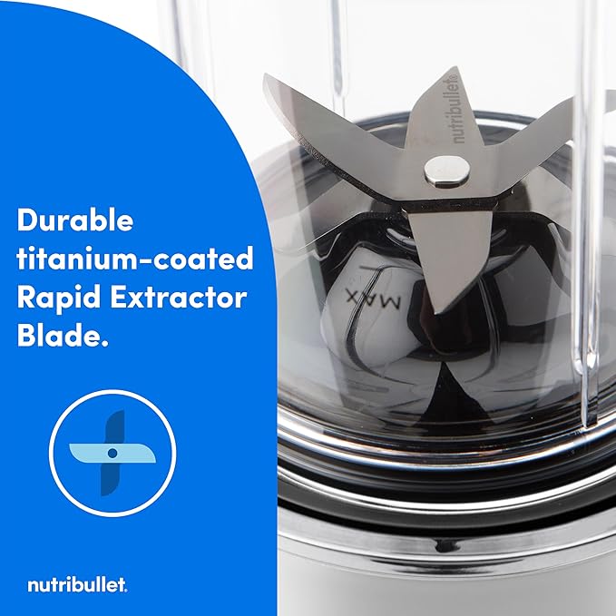 - The Rapid Extractor Blade is equipped with a stainless-steel platform and titanium coating to increase longevity and reduce blending time. Each blade comes with a 5-year limited warranty (visit nutribullet.com/warranty for details).