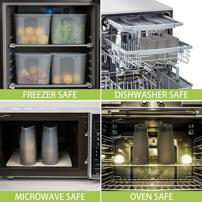 - 【100% SILICONE - SAFE & RELIABLE】Made of 100% food-grade silicone, our reusable food storage bags are PVC, lead, chlorine, phthalates, and BPA-free. Non-toxic and odorless, they offer safe food storage to your family. Designed with durability in mind, their thick material and sturdy construction ensure long-lasting use. Lightweight and convenient for everyday use, they're the ideal storage solution