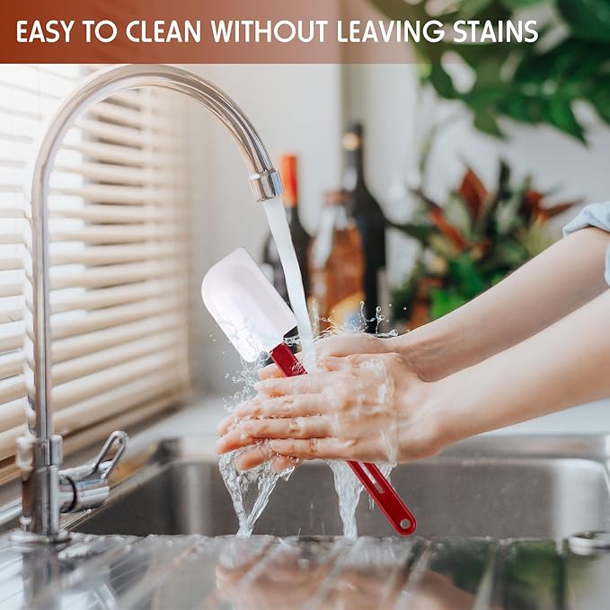 - Easy to Clean: these heat proof spatulas with handles are nonstick and convenient to wipe clean with a damp sponge in minutes without stains or odor residue; And they are dishwasher safe, which can save you much time and effort in cleaning and bring you more enjoyable use experiences