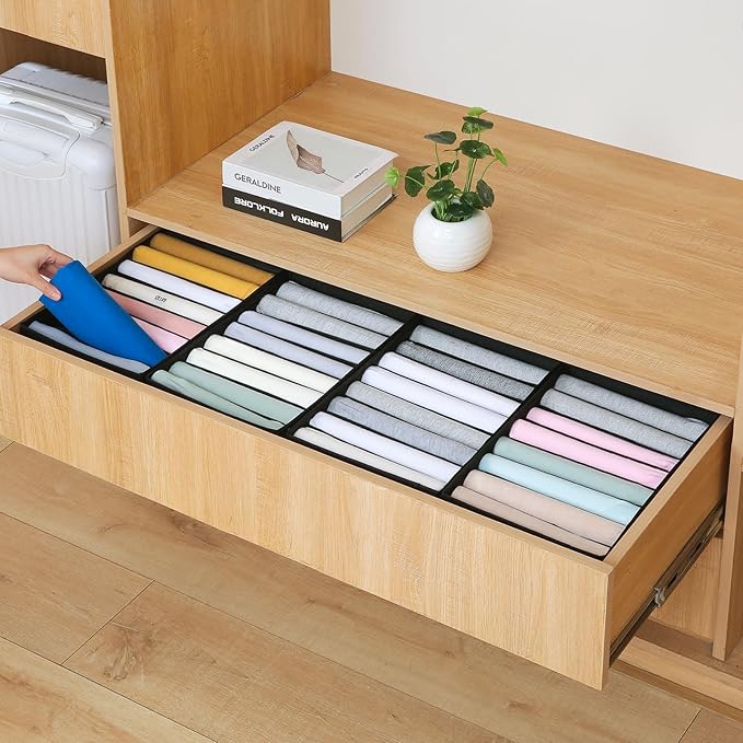 - EASY TO ASSEMBLE: You can quickly assemble this clothes drawer organizer by inserting the supported PP board. And you can fold it when you don't need it without taking up your drawer space.