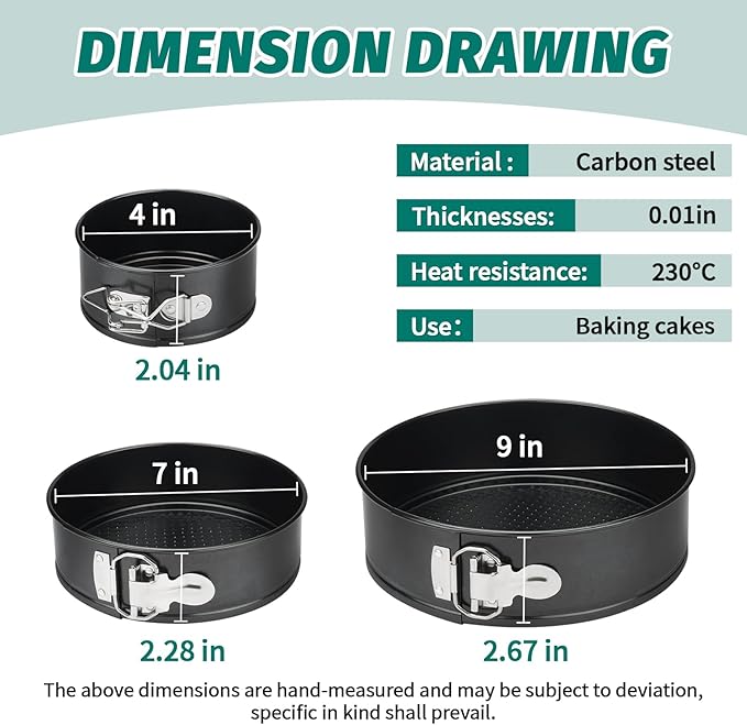 - 【Baker’s Friend 】: Set includes (4-inch,7-inch,9-inch) springform pan,deep cake pan set lets you bake everything better for perfect results with cheesecake, brownie, deep dish pizza, lasagna, casserole, and quiche.