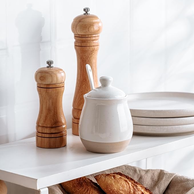 - Thoughtful Design: This sugar bowl comes with a snug-fitting lid and a handy mini spoon. The lid keeps sugar fresh and dust-free, while the spoon ensures precise portions without messy hands. Plus, the built-in spoon rest keeps everything tidy, and the wide-mouth design makes filling and scooping effortless.